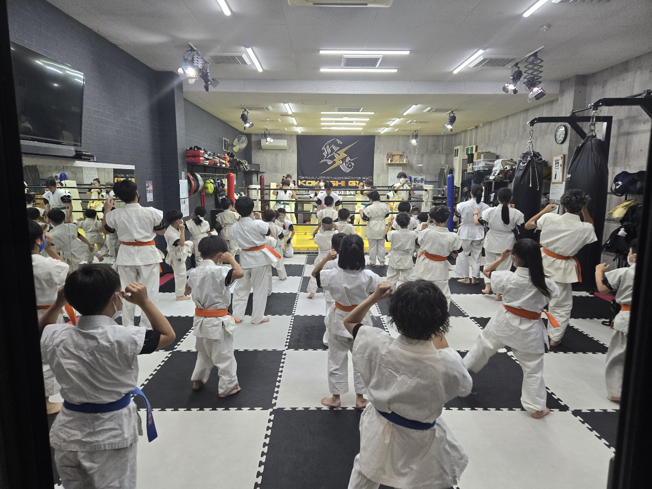 低学年で格闘技に馴染みがなく「格闘技が全く初めて」というお子様は、まず格闘技に馴染んで もらうことから始め、優しく親切に指導しますので気軽に格闘技を始めることが出来ます。 |